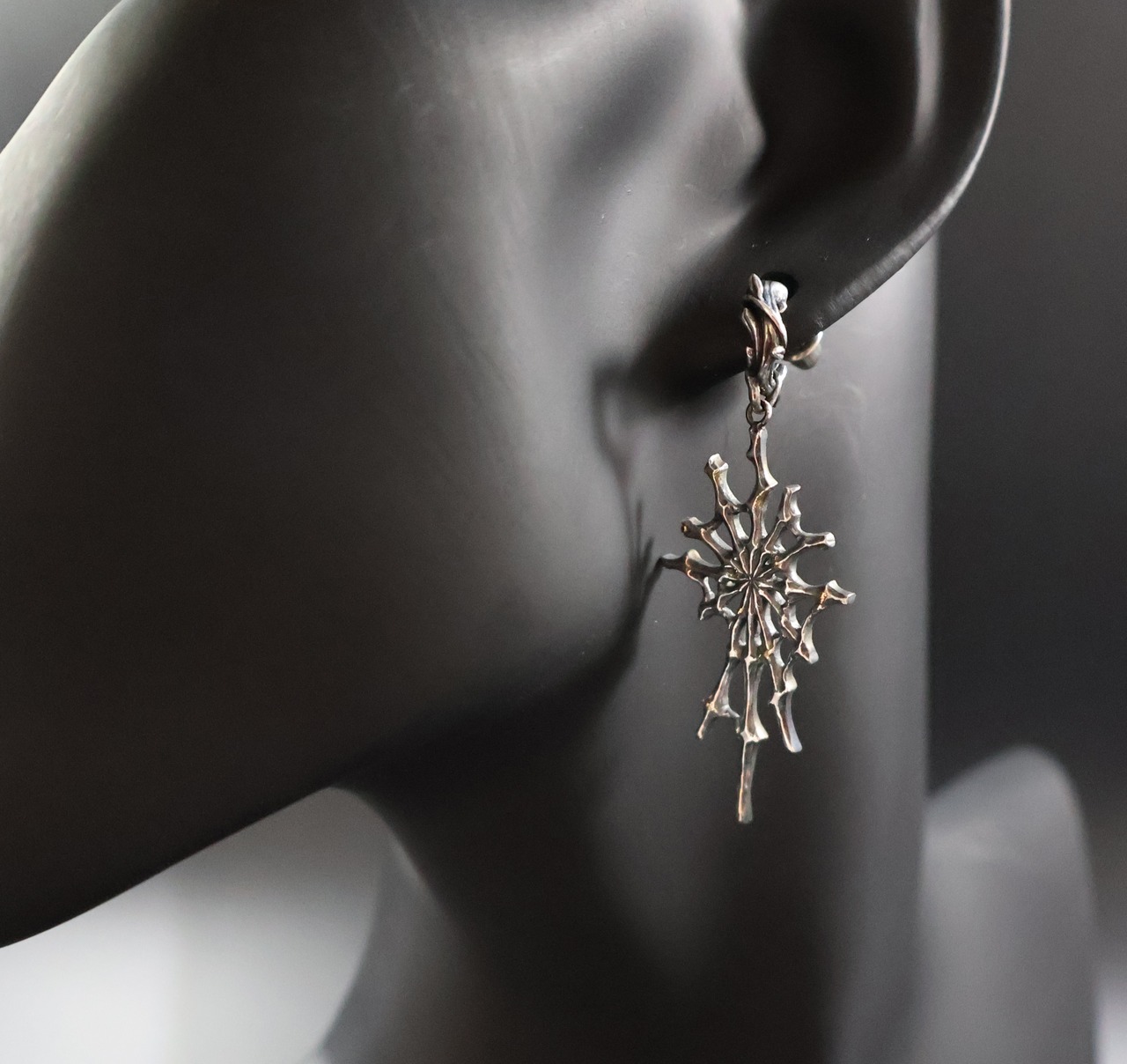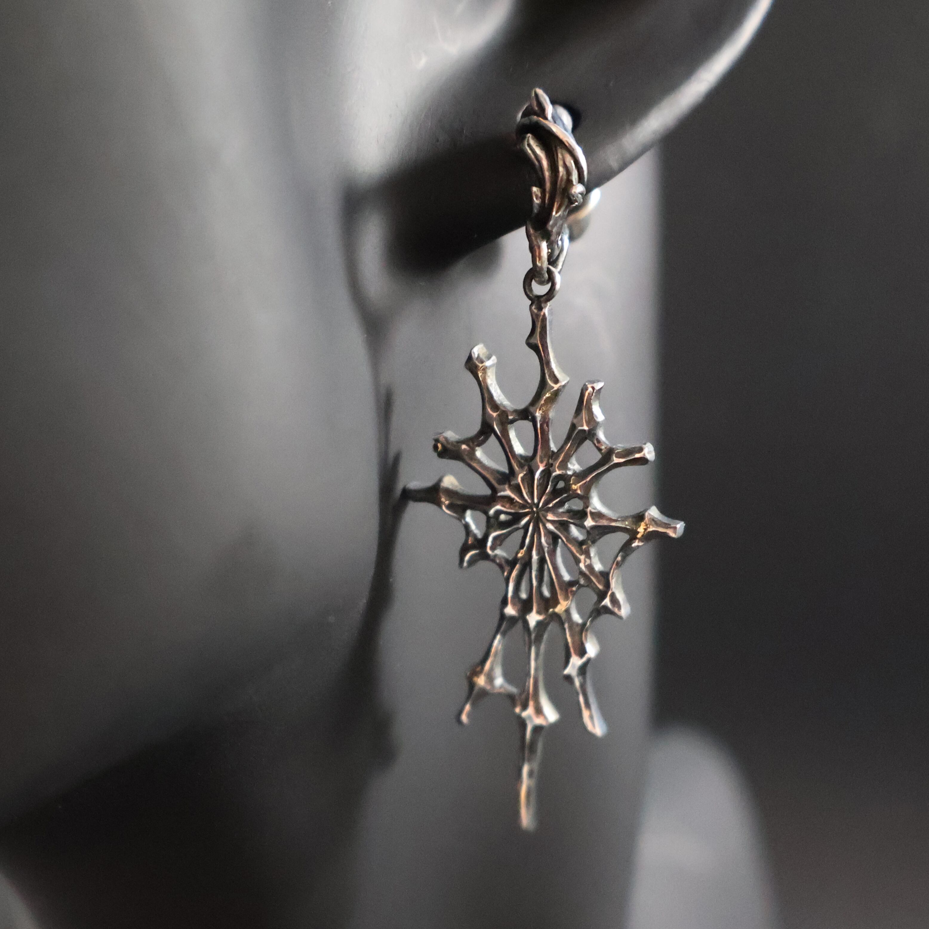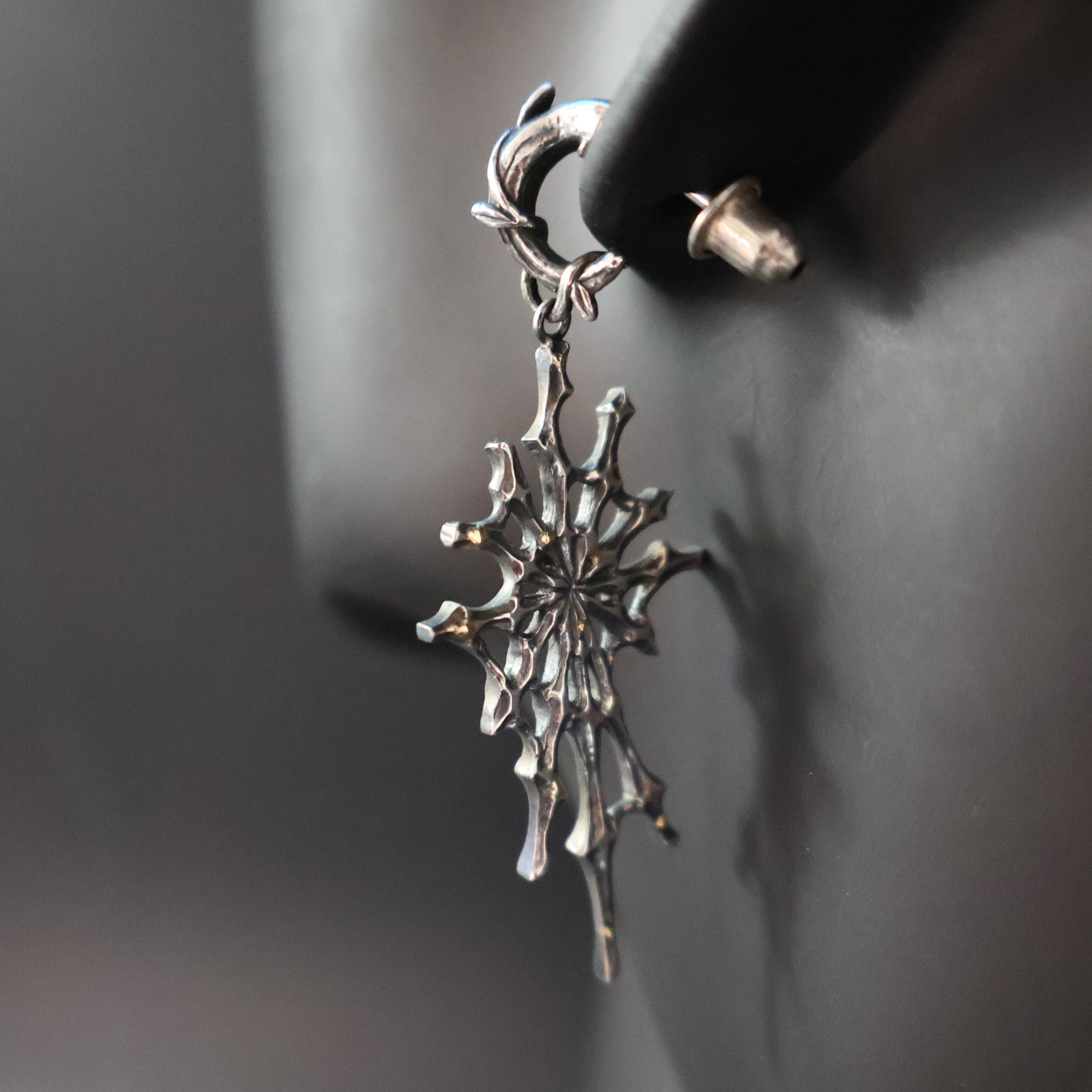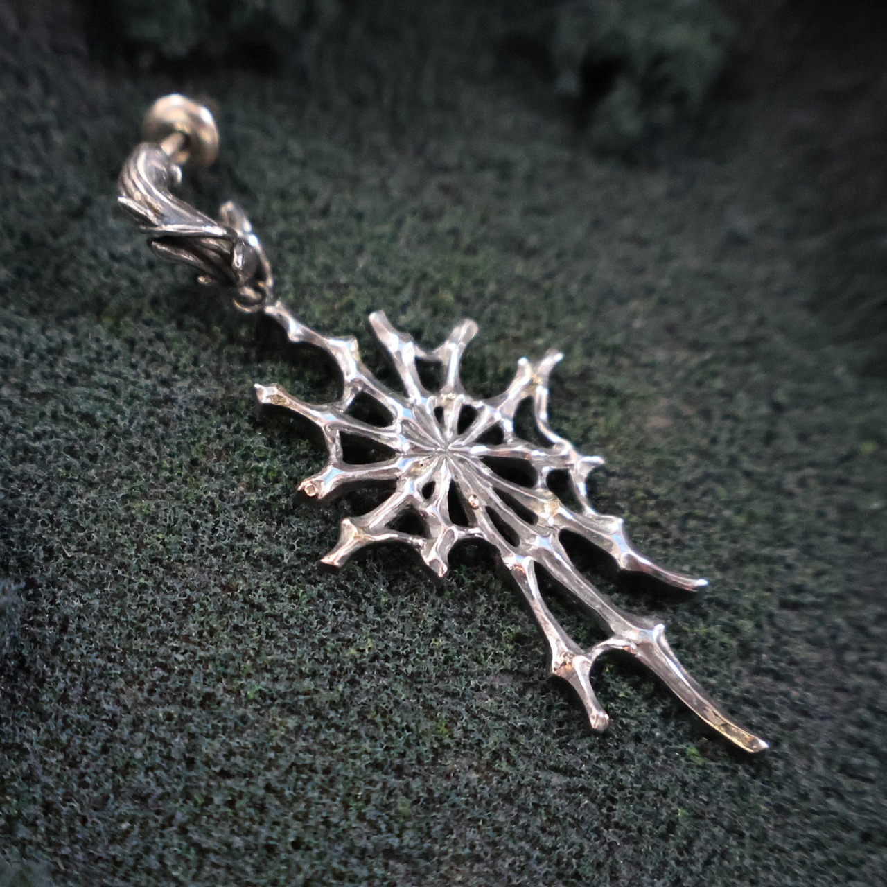 (日本語の小説では「ホシヨビグモ」と表記しています。ジュエリーでは、その光る物質を再現するために、金ロウ材を蜘蛛の巣部分に溶かして付けて表現しています)
